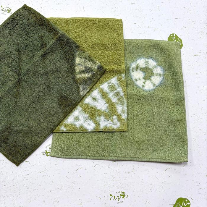 ウージ染めのミニハンドタオル。