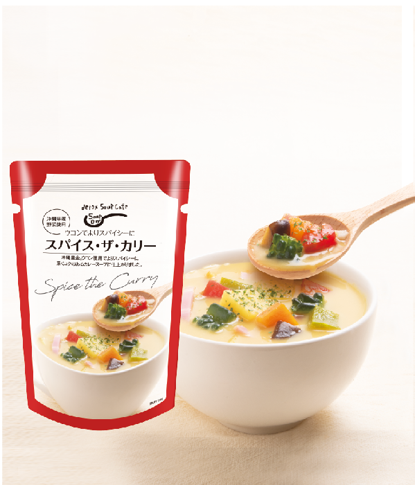 沖縄皇金ウコン使用でよりスパイシーに深くコクのあるカレースープに仕上がりました。