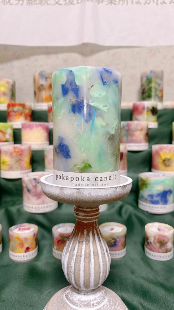 インテリア/雑貨 沖縄の贈りもの特集 就労継続支援B型事業所ぽかぽか くじらキャンドル (ブルー系) 琉球ガラスのきらめきを閉じ込めた、くじら型キャンドル。 やさしい灯りとともに、沖縄の海を感じるひとときをお届けします。 4,730 円 ポイント: 43 Pt ■送料 就労継続支援B型事業所ぽかぽか:全国一律500円~ ※ログインいただくとご登録住所への送料が表示されます 数量 在庫数: 30 カートに入れる 詳細情報 沖縄の海を感じる、やさしい佇まいのくじらキャンドル。 琉球ガラスのかけらをあしらい、ひとつひとつ手作業で仕上げています。 光を受けてきらめくガラスと、やわらかく灯るキャンドルの灯り。 その組み合わせが、まるで海の中にいるような穏やかな時間を演出してくれます。 灯す部分にはソイワックスを使用しており、やさしく落ち着いた光が広がります。 見て楽しむインテリアとしても、灯して癒しの時間を過ごすアイテムとしてもおすすめです。 制作は、就労継続支援B型事業所「ぽかぽか」。 琉球ガラスの色分けや配置などの工程から、ひとつひとつ丁寧に仕上げています。 沖縄のきらめきと、人の手のぬくもりが詰まった特別なキャンドルです。 原材料 外側:琉球ガラス・レジン 内側:ソイワックス 香料:キャンドル専用香料 芯:コットン芯 内容量 内容量:約265〜270g ※本製品はデザインによって、琉球ガラスや配置により重量に若干の個体差がございます。なお、燃焼時間や使用感に大きな差はございません。 保存方法 ・直射日光・高温多湿を避けて保管してください。 ・高温環境(夏場の車内など)では、ワックスが溶ける可能性があります。 ・火気の近くや不安定な場所での保管はお控えください。 ・花材の色味は アレルゲン 本製品には天然の花材および香料を使用しております。 体質や体調により、まれにアレルギー反応が生じる可能性がございます。 ご使用中に異常を感じた場合は、直ちに使用を中止してください。 配送方法 就労継続支援B型事業所ぽかぽか 発送目安 ご注文から1週間〜2週間で発送いたします。 こだわりポイント このくじらキャンドルは、沖縄の自然と、人の手のぬくもりを大切にしながら生まれました。 ただ「かわいい」だけではなく、素材・製法・背景のすべてにこだわりを込めています。 まず特徴的なのが、キャンドルの中にあしらわれた琉球ガラスです。 沖縄の海を思わせるような色と光を持つガラスのかけらを、一つひとつ丁寧に選び、バランスを見ながら配置しています。 同じ色合いでも、光の当たり方や見る角度によって表情が変わるため、まったく同じ仕上がりになることはありません。 そのため、このキャンドルはすべてが一点もの。 世界にひとつだけの出会いを楽しんでいただけます。 また、灯す部分にはソイワックス(大豆由来のワックス)を使用しています。 やさしく穏やかな灯りが特徴で、空間をあたたかく包み込みます。 一般的なパラフィンワックスに比べてススが出にくく、ゆったりとした時間を過ごしたいときにもおすすめです。 見た目の美しさだけでなく、「灯したときの心地よさ」にもこだわっています。 さらに、このキャンドルのもうひとつの大切なポイントは「制作の背景」にあります。 本製品は、沖縄にある就労継続支援B型事業所「ぽかぽか」で制作されています。 ここでは、一人ひとりが自分のペースで“ものづくり”に関わりながら、日々の仕事に取り組んでいます。 琉球ガラスの色分けや配置、仕上げの工程まで、すべて手作業。 それぞれの工程に関わる人の想いが、少しずつ重なって、ひとつの作品として完成します。 丁寧に作られているからこそ、どこかやさしさを感じられる仕上がりになっています。 「誰かの毎日に、あたたかい灯りを届けたい」 そんな想いを込めて作られたキャンドルです。 また、くじらというモチーフにも意味があります。 ゆったりと海を泳ぐくじらの姿は、見る人の心をふっとゆるめてくれます。 忙しい日常の中で、少し立ち止まり、深呼吸をするような時間を届けられたらという願いを込めています。 灯して楽しむのはもちろん、インテリアとして飾るだけでも、空間にやさしいアクセントを添えてくれます。 光を受けてきらめく琉球ガラスは、昼と夜で違った表情を見せてくれるのも魅力のひとつです。 ひとつとして同じものがない特別感。 手作りだからこそ感じられるあたたかさ。 沖縄の自然を感じる素材。 そのすべてを詰め込んだ、くじらキャンドル。 手に取ってくださった方の時間が、少しでもやさしく、心地よいものになりますように。 ショップ紹介 就労継続支援B型事業所ぽかぽか 沖縄で育ったお花を使い、利用者様が花の加工からデザイン、仕上げまで丁寧に手作業で制作した一点ものです。 ものづくりを通して生まれる「うれしい」と、手に取ってくださる方の暮らしに灯るあたたかな光… ぽかぽかのキャンドルが、あなたの日常に小さなぬくもりを届けられた
