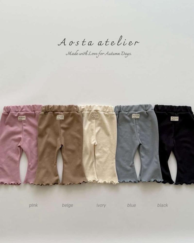 くすみ感のあるナチュラルカラーが魅力。ウエストは優しくフィットするゴム使用で、おなか周りを締め付けず安心して着用いただけます。